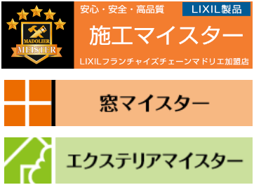 認定基準をクリア!私たちは、"LIXIL製品施工マイスター"達成のPROショップです。そして住宅の断熱化、防犯対策の診断・提案を行う「窓マイスター」、ポスト・表札の取り付けからお庭の本格リフォームまでを提案する「エクステリアマイスター」勤務店です。